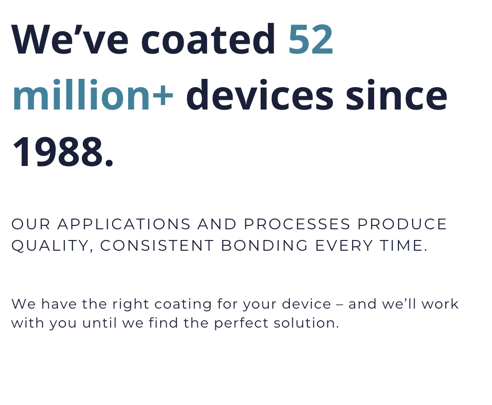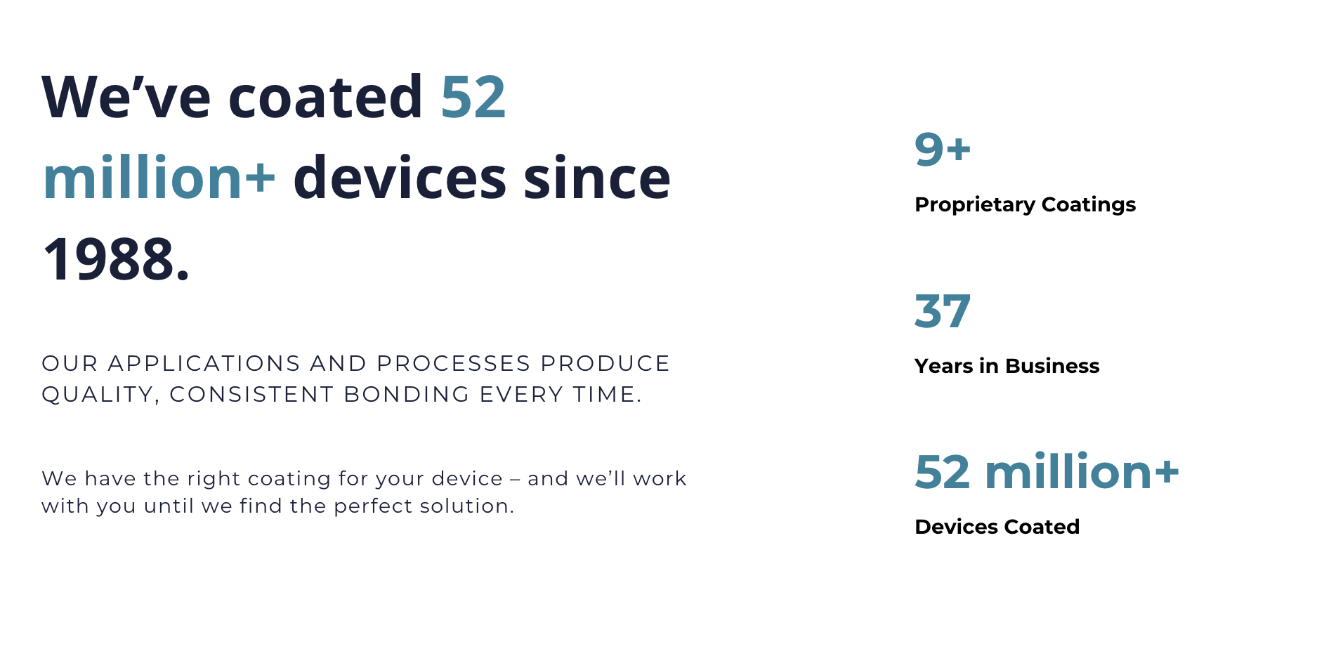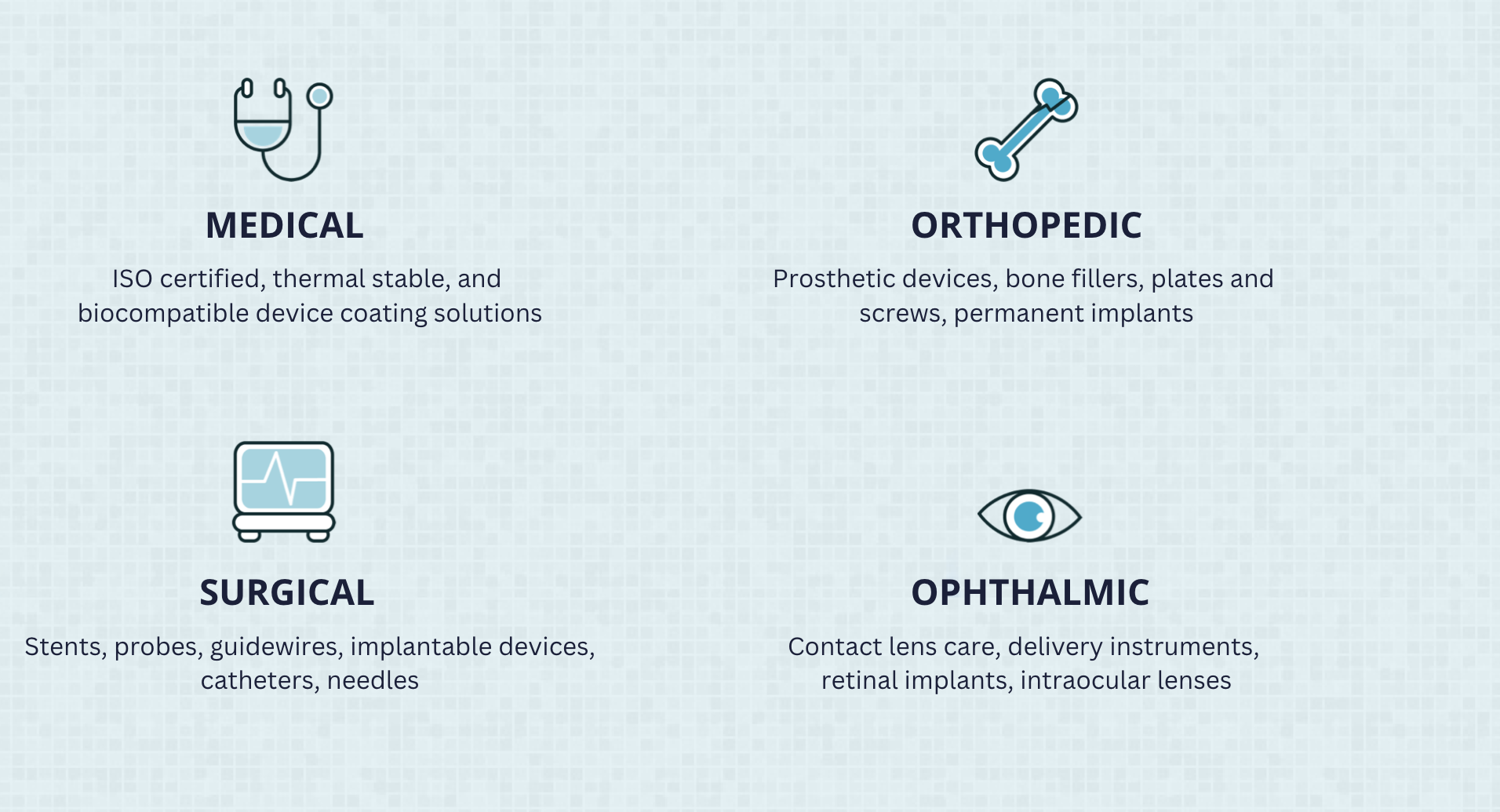 We offer a hydrophobic lubricious coating that helps improve patient comfort when applied to medical devices like plastics, guidewires and other short-term implanted devices.